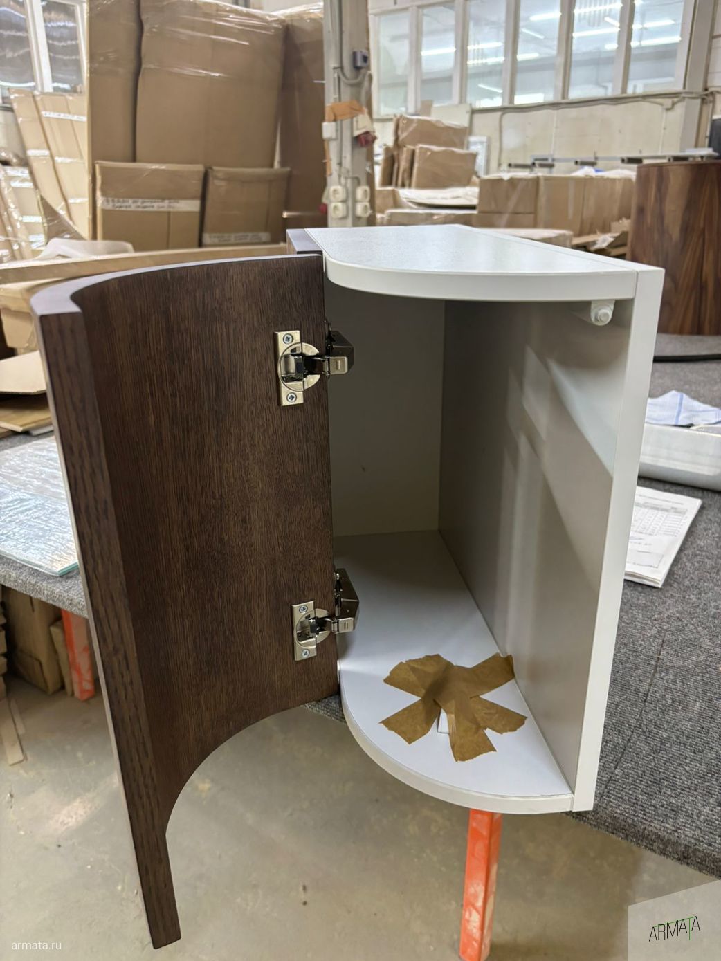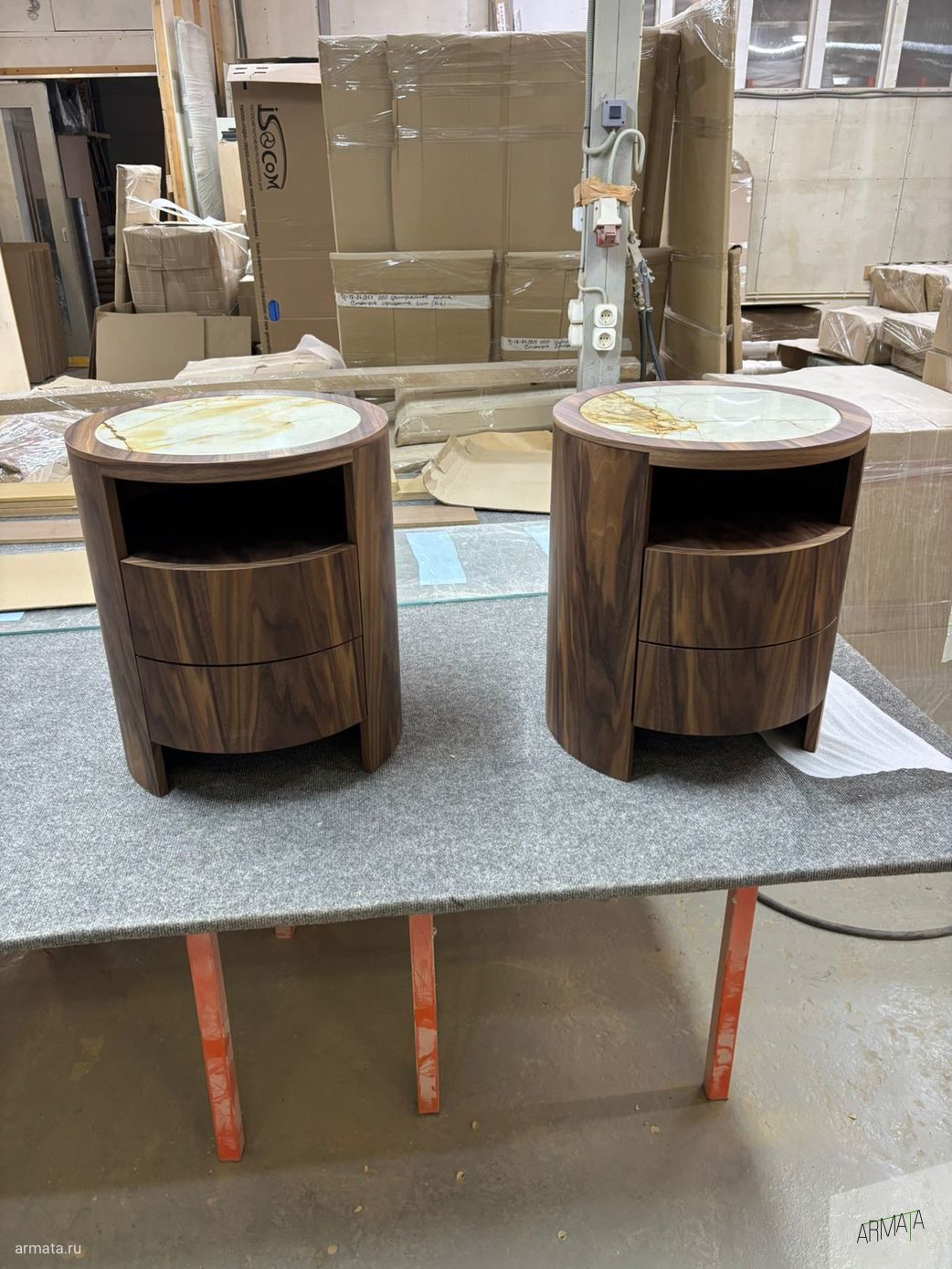 - полукруглые и круглые тумбы и тумбочки из фанеры, МДФ и шпона