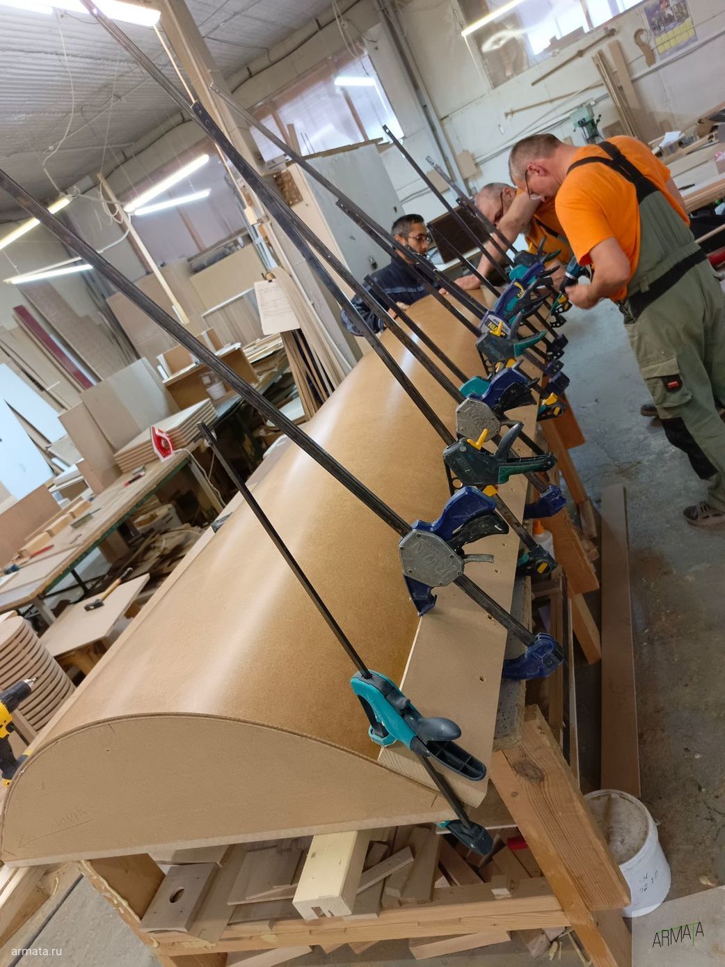 Несмотря на доступность современного оборудования, значительная часть процесса изготовления радиусных изделий остаётся ручной. Это связано с необходимостью тонкой доводки, подгонки шпона и устранения возможных дефектов.